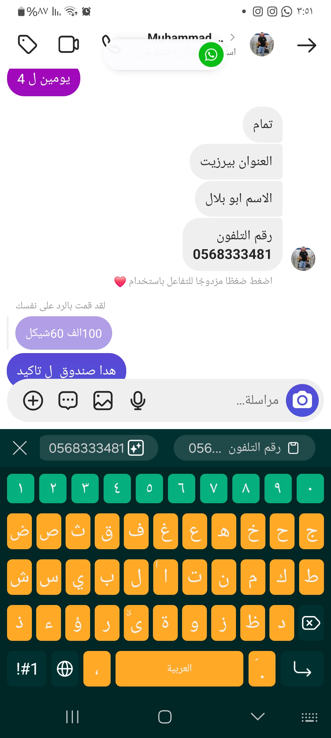 اسم الزبون ابو بلال