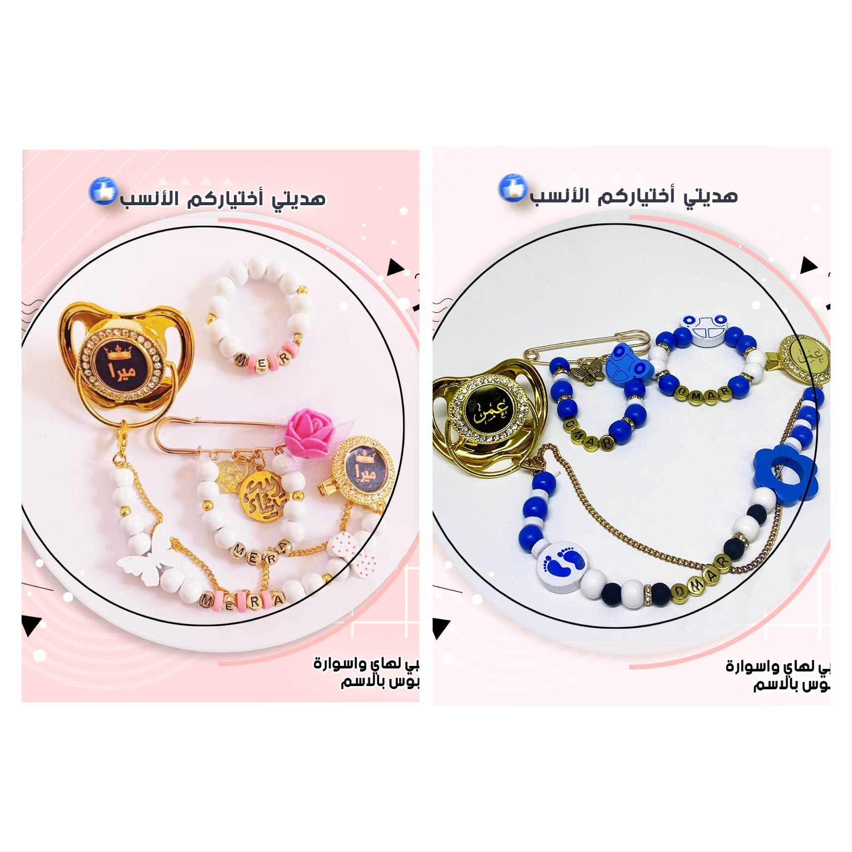 طقم لهاي ازرق مع ابيض اسم ورد