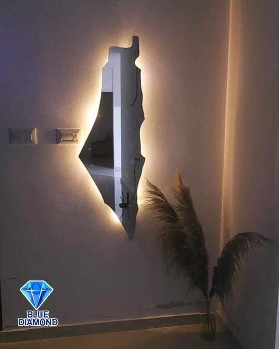 مراية خارطة فلسطين اكريلك فضي وظهرها خشب سمك 6ملم ......