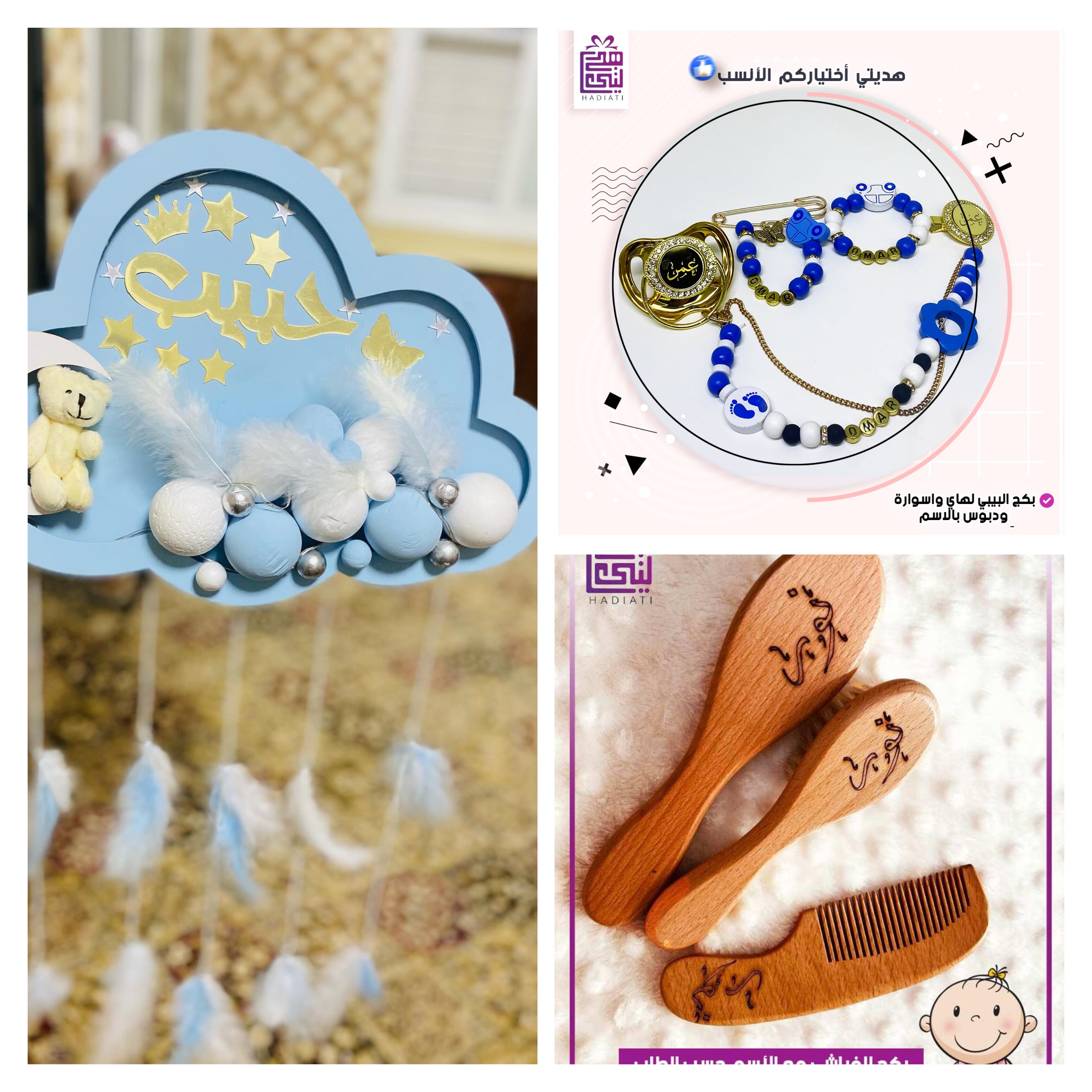 تعليقه غيمه لون ازرق الاسم قاسم لون الاسم دهبي مع الاشكال …. + طقم اللهايه لون ازرق مع ابيض الاسم Qasim + فرشاي ناعمه قطعه وحده بس عليها اسم قاسم 180 شيكل شامل التوصيل