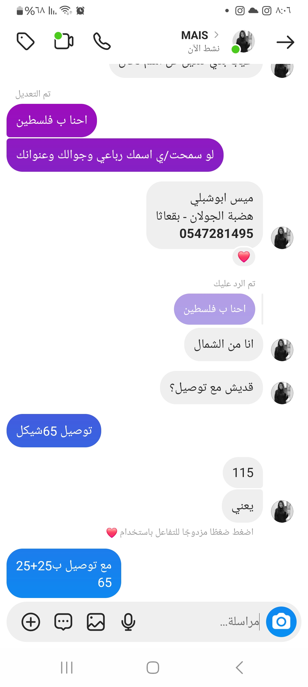 شامل توصيل 115شيكل