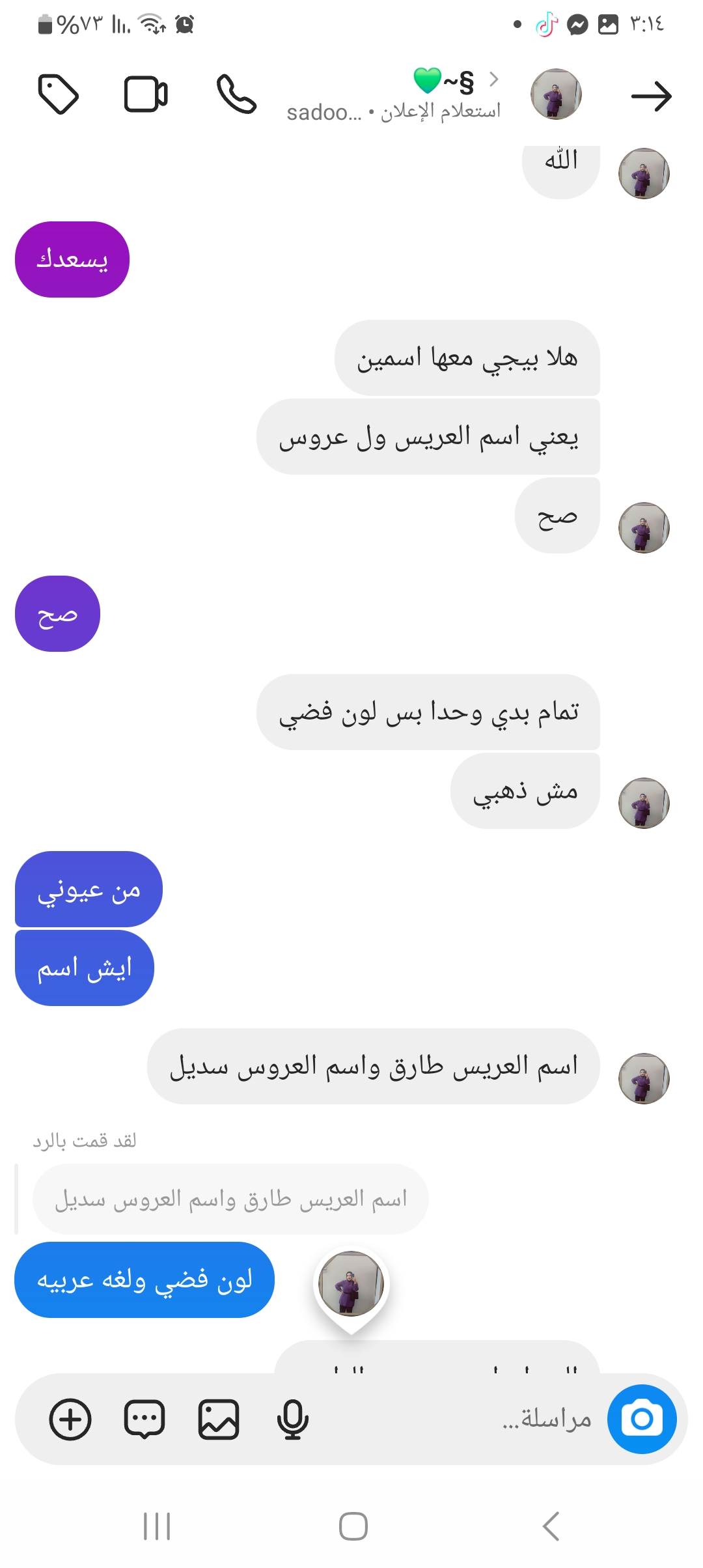 اسم العريس طارق واسم العروس سديل لون فضي ولغه عربيه