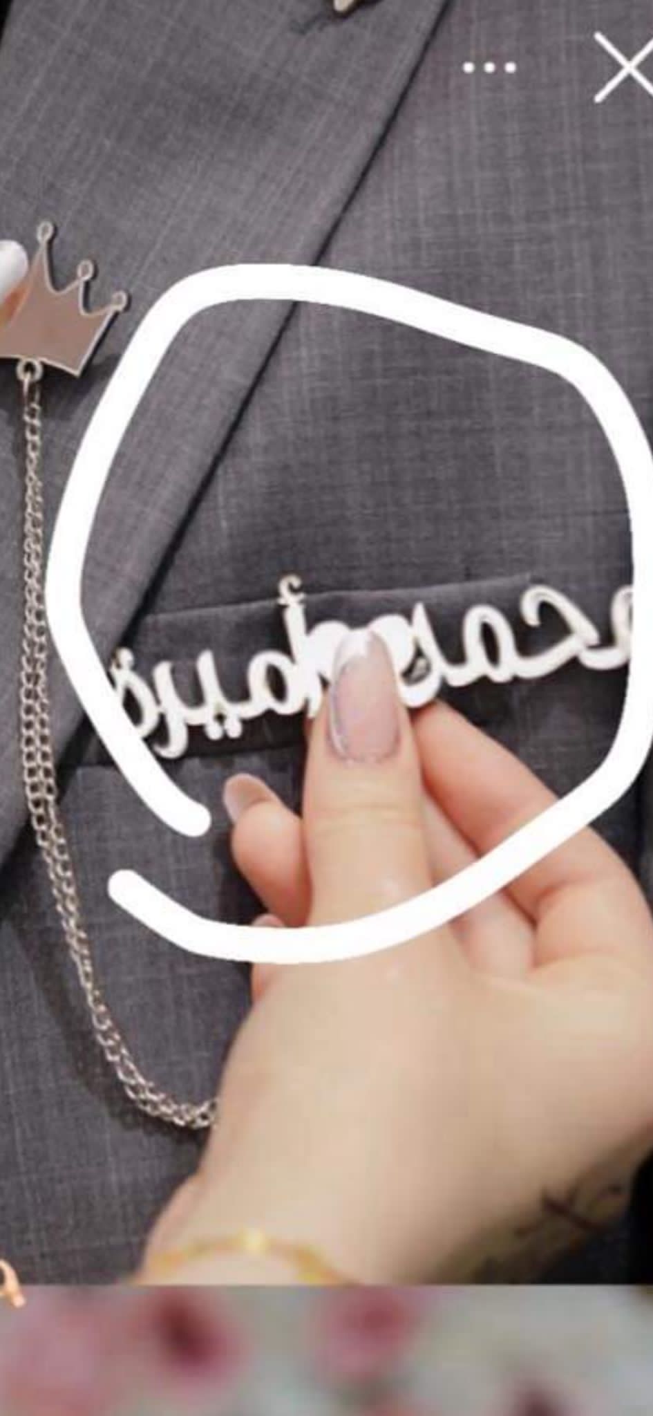 دبوس نفس الصورة لون فضي الاسماء أحلام ومعتز ...... مع السنسال والتاج كامل