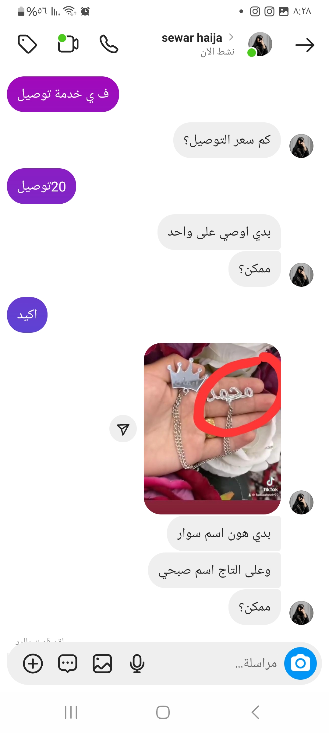 بروش سوار وعلى التاج اسم صبحي لون فضي ولغه عربيه
