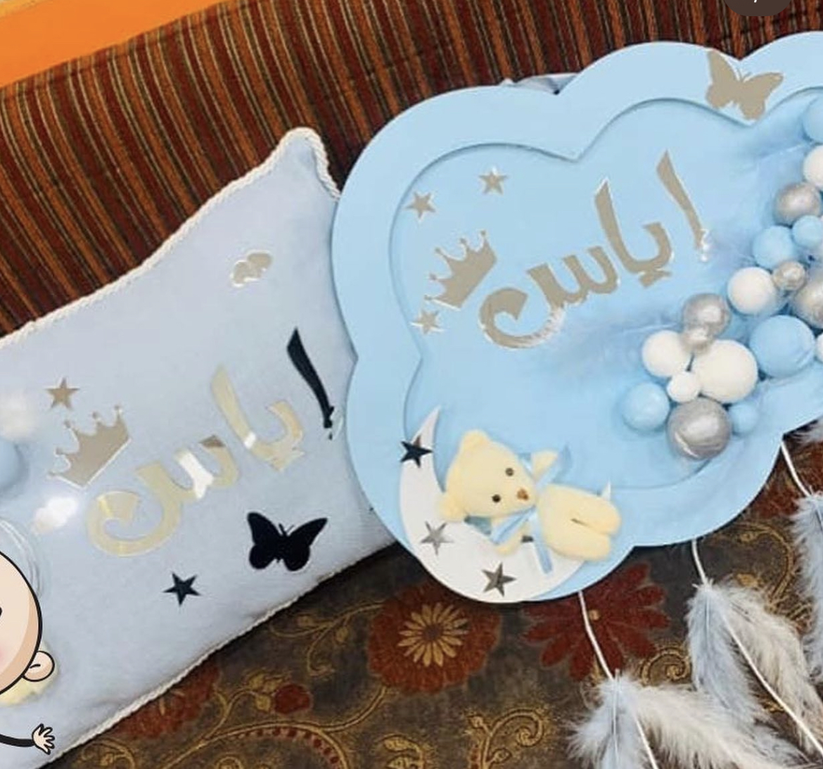 + مخده لون ازرق الاسم فؤاد لون الاسم فضي مع الاشكال