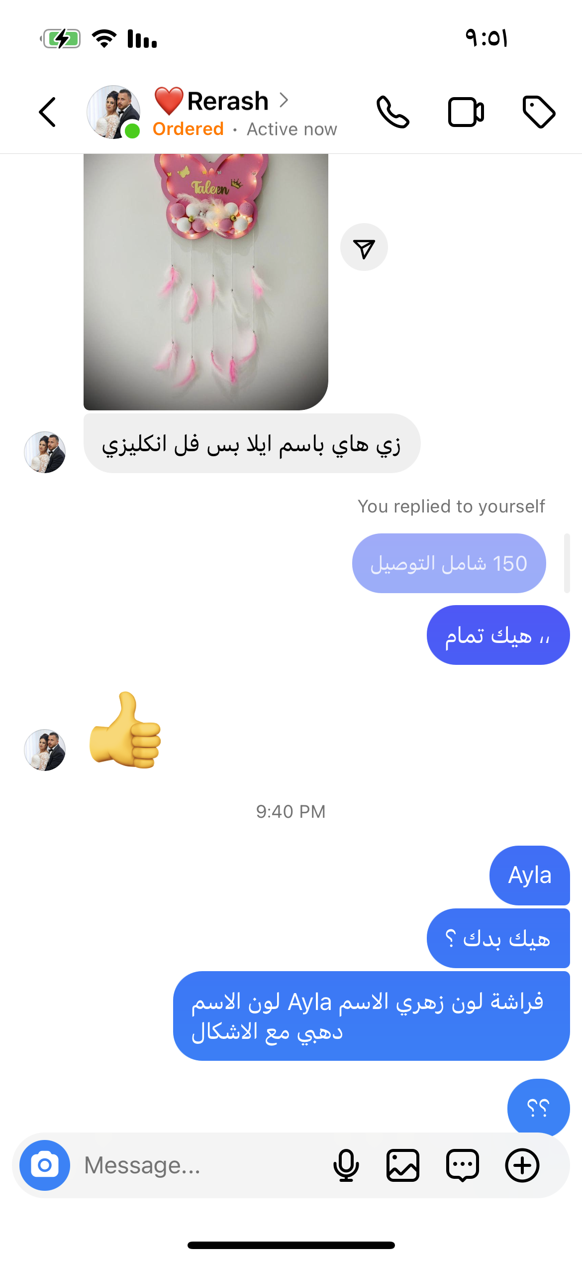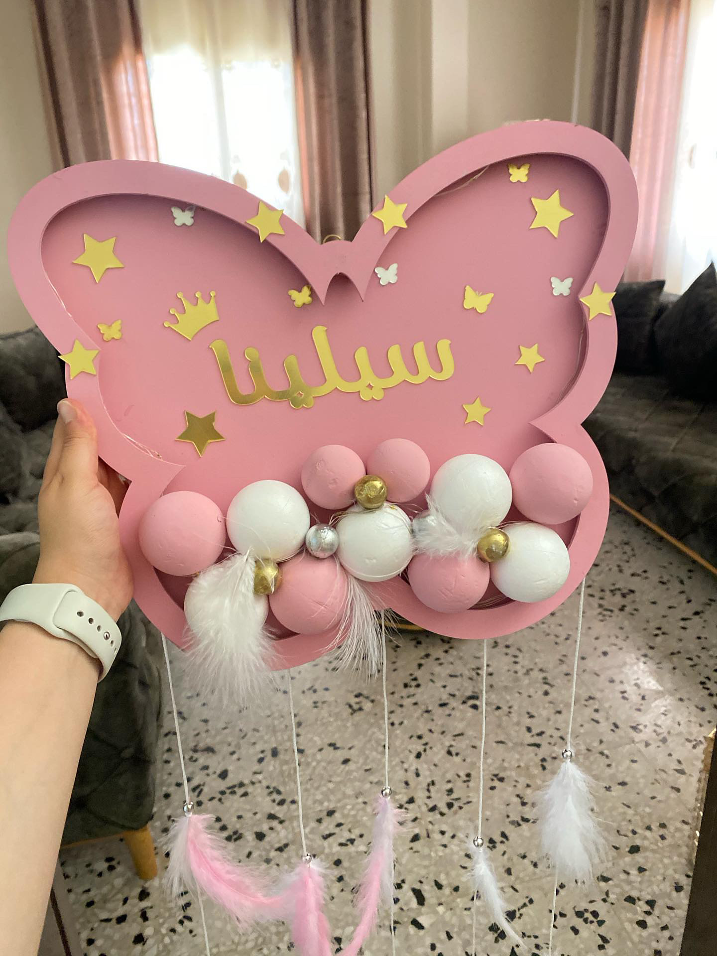 فراشة لون زهري الاسم Ayla لون الاسم دهبي مع الاشكال