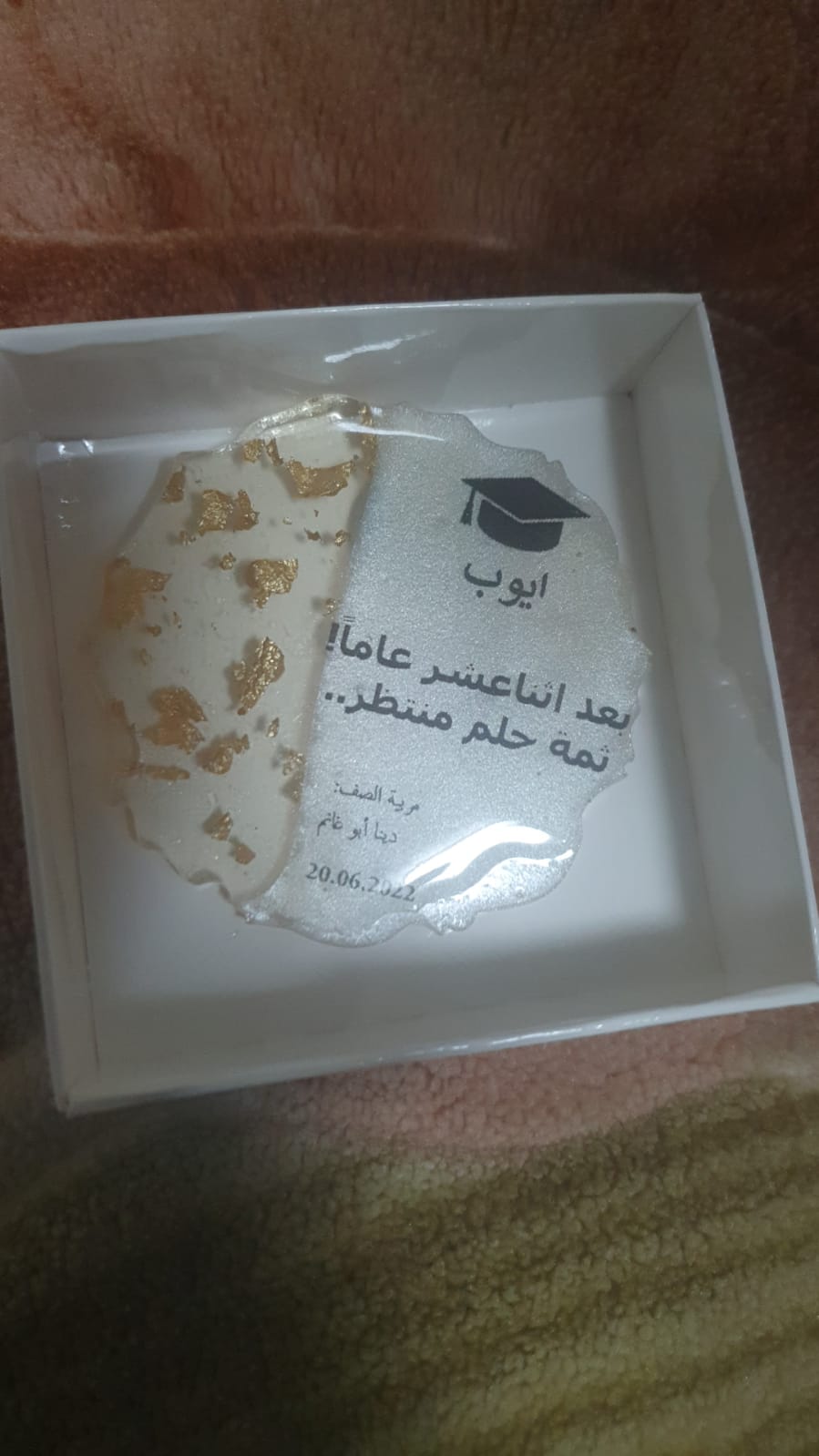 عدد 28 قطعه مكتوب ع كل وحده اسم الطالب وطقيه التخرج