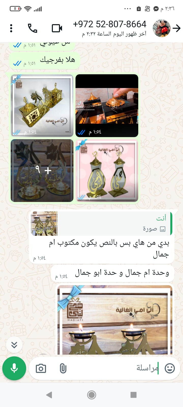 مباخر عدد2 مكتوب عليه ام جمال وابو جمال محل كلمه امي الغاليه لون ذهبي لغه عربيه