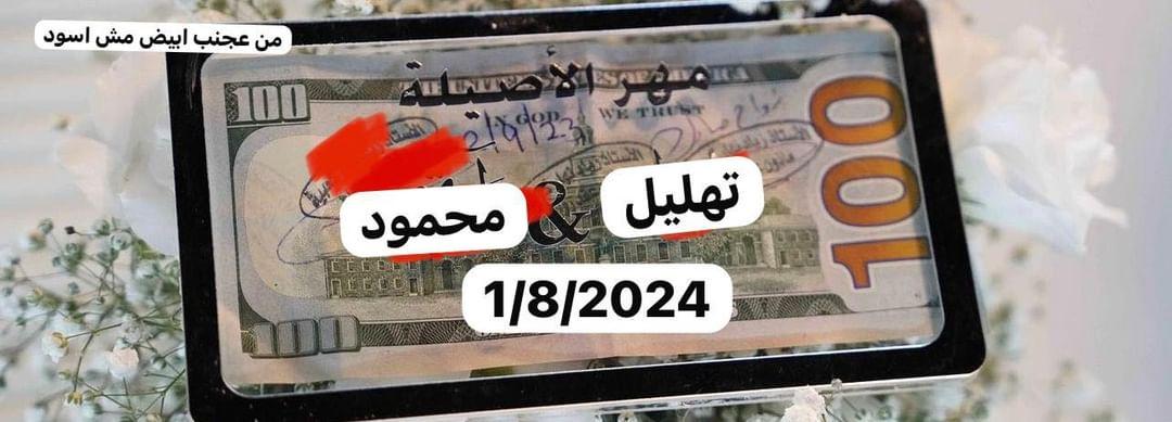 بطاقة معايده لون ابيض عليها شفافيه مكتوب ع محمود وتهليل وتاريخ عرس 1▪︎8▪︎2024 لون فضي لغه عربيه