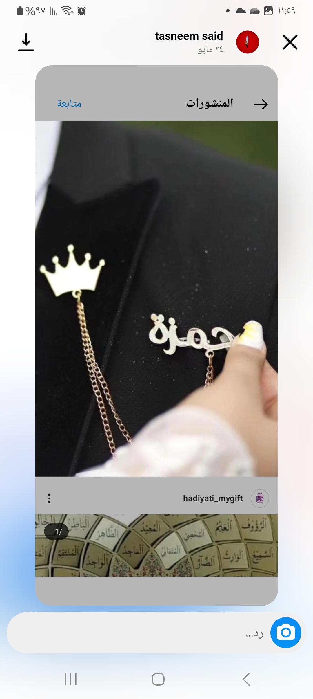 بروش بدله باسم مع تاج لون فضي لغه عربي