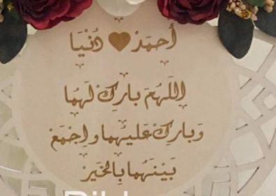 لاقته اكريلك شفاف قطر 30سم نكتب عليها الاسماء بشار ومريم والعبارة اللهم بارك لهما وبارك عليهما واجمع بينهما يالخير ..