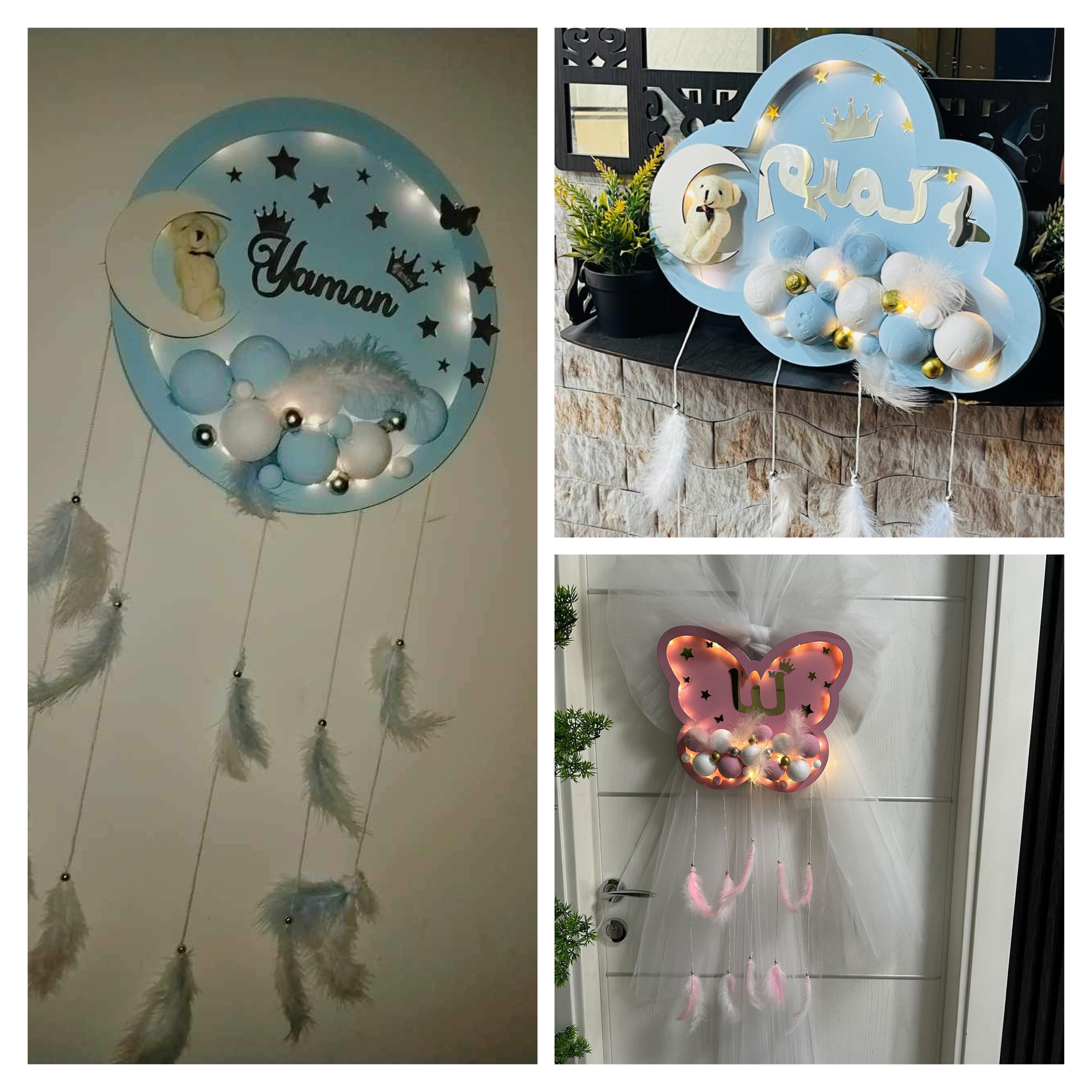 ١- تعليقه على شكل فراشه الاسم نوره لون الاسم دهبي مع الاشكال …