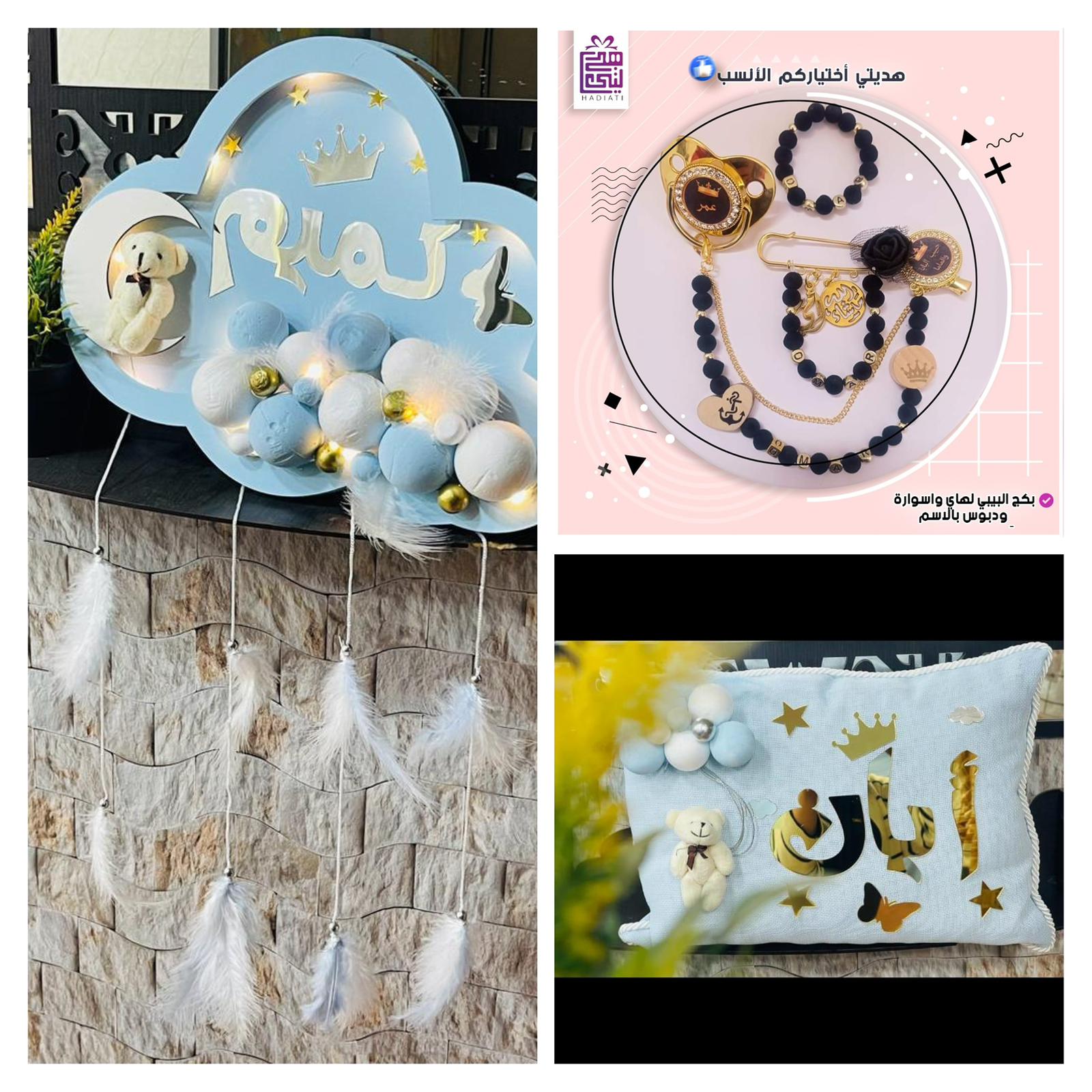 1-تعليقة لون ازرق الاسم رائد لون الاسم دهبي مع الاشكال ...