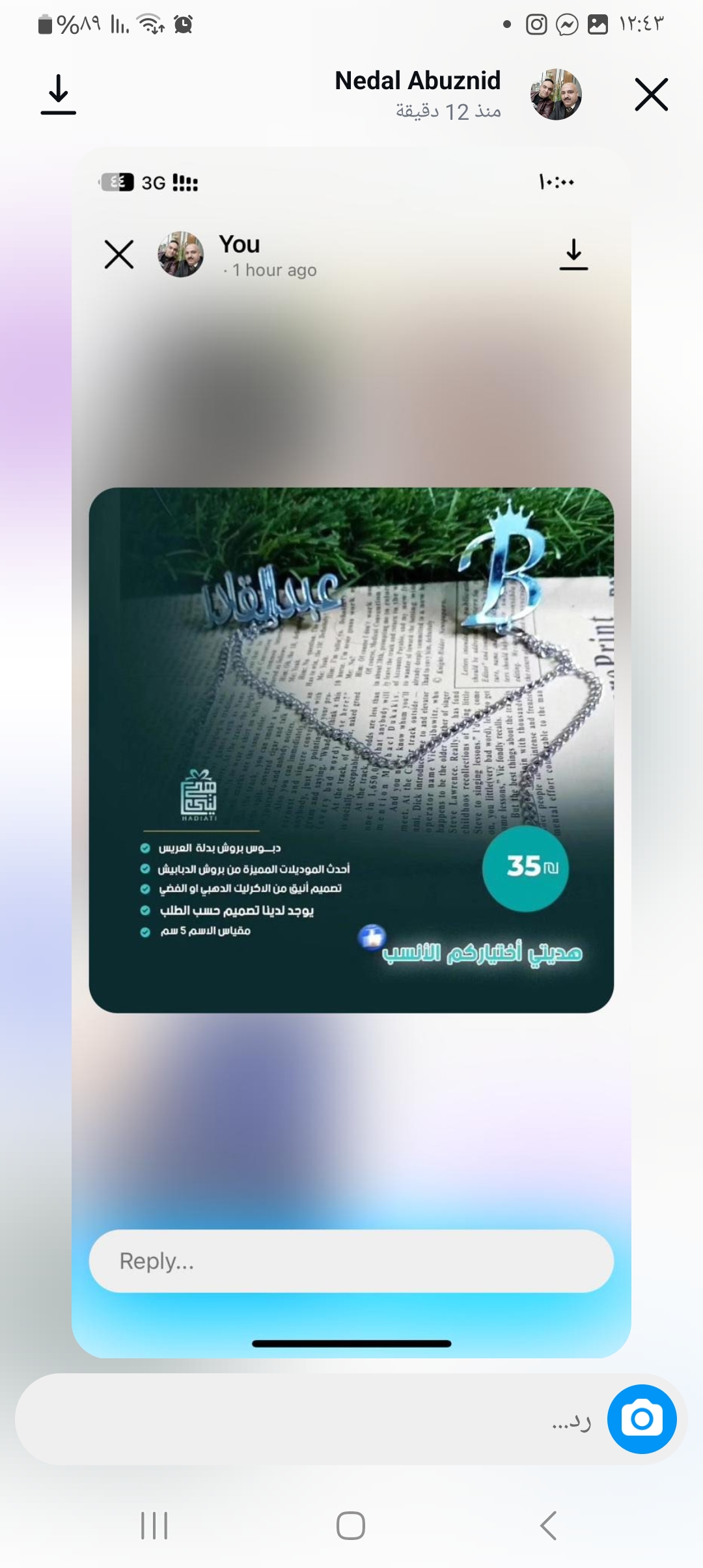 بروش بدله اسم نضال وع حرف تاج Yلون فضي