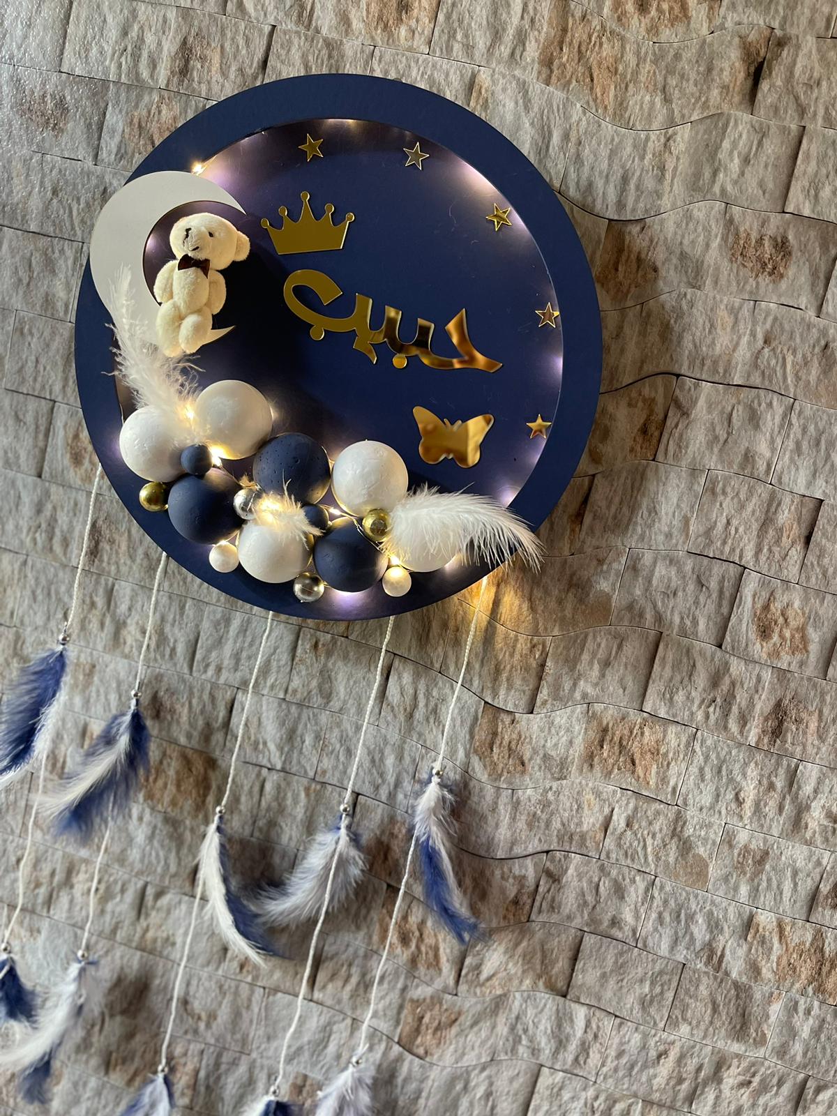 تعليقه على شكل دائري ارن كحلي الاسم اياد لون الاسم دهبي مع الاشكال