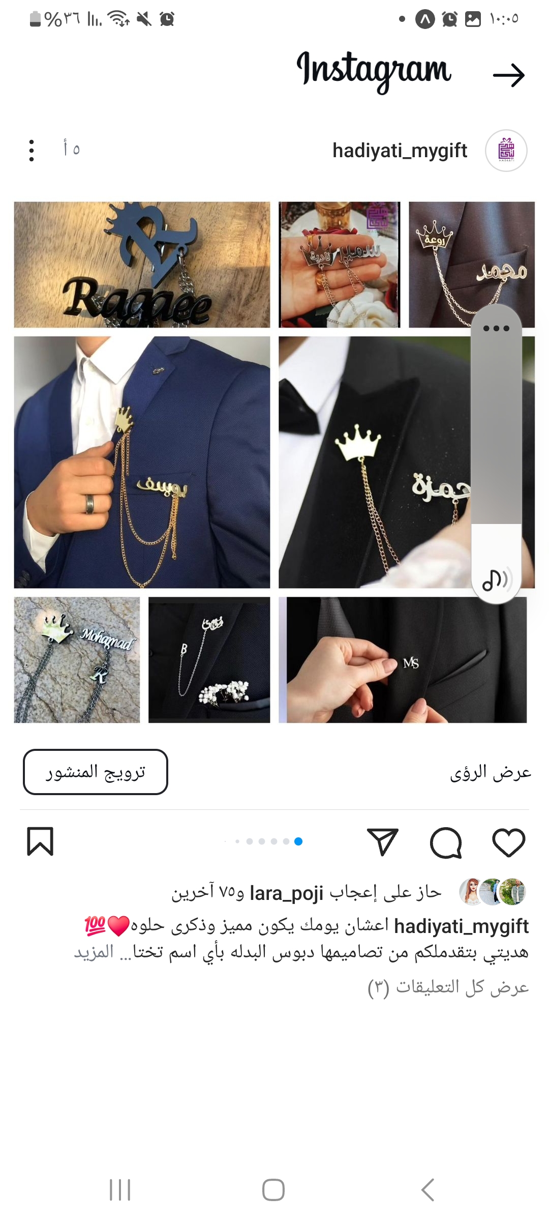 بروش بدله والاسم علي ع تاج جني لون فضي ولغه عربيه