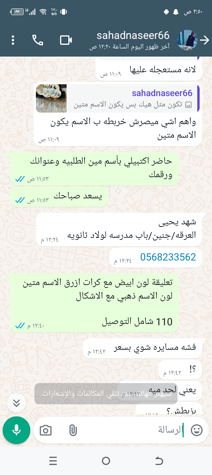 تعليقة لون ابيض مع كرات ازرق الاسم متين لون الاسم ذهبي مع الاشكال