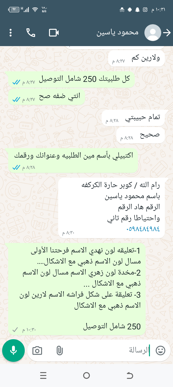 250 شامل التوصيل