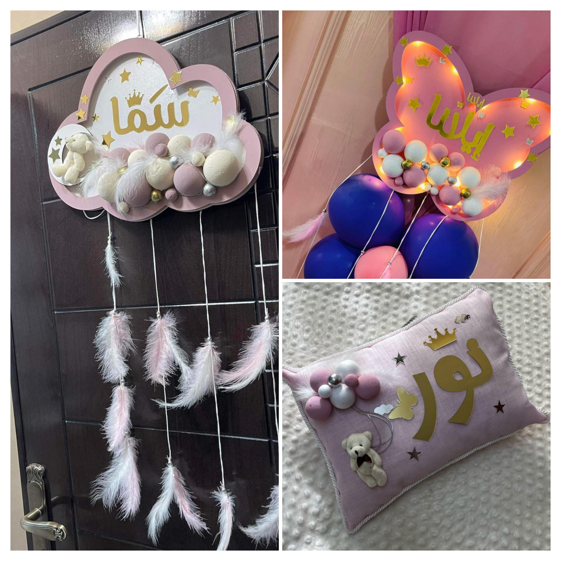 1-تعليقه لون نهدي الاسم فرحتنا الأولى مسال لون الاسم ذهبي مع الاشكال....