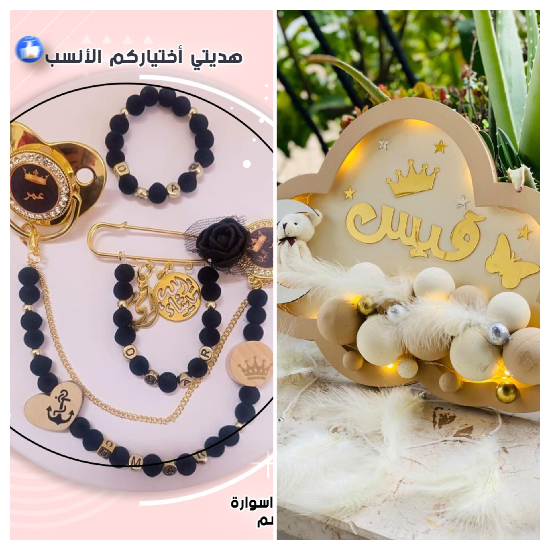 1-تعليقه لون بيج الإسم فارس لون الاسم ذهبي مع الاشكال....