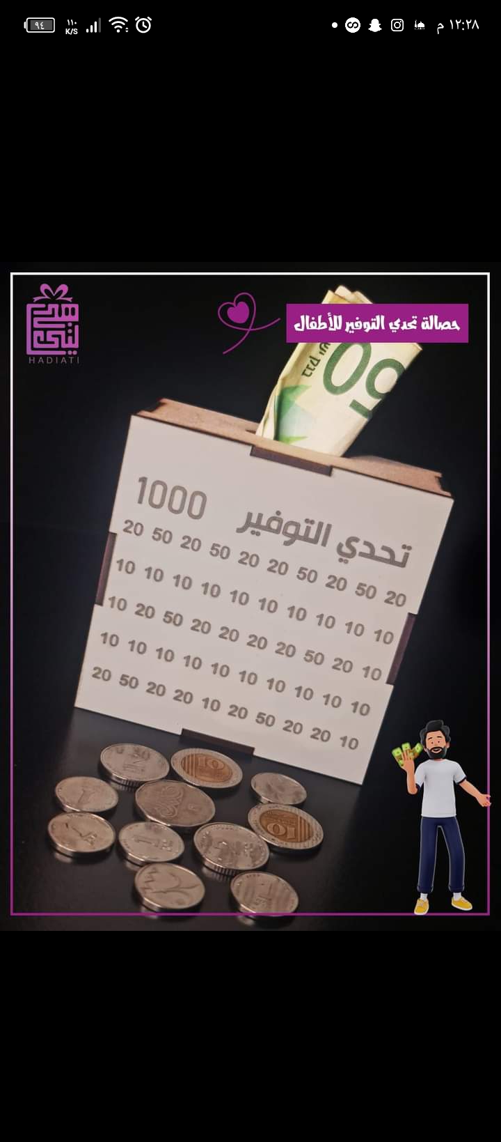 حصاله حجم 10*10 مبلغ 900 عدد 3 مع كتابة اسماء ( كريم. فاطمه . بشرى )