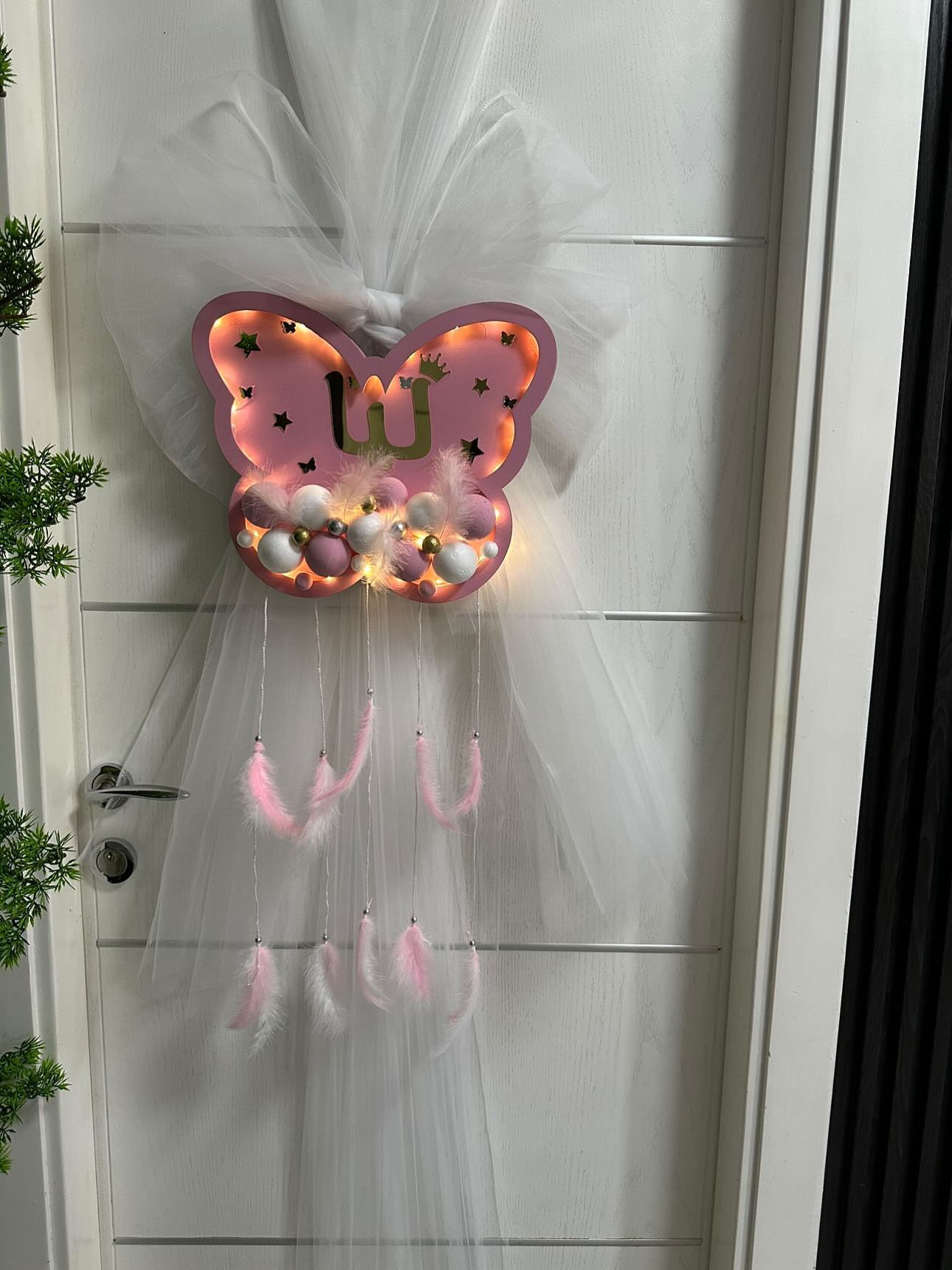 تًعليفة على شكل فراشه الاسم إيميلي لون الاسم دهبي مع الاشكال
