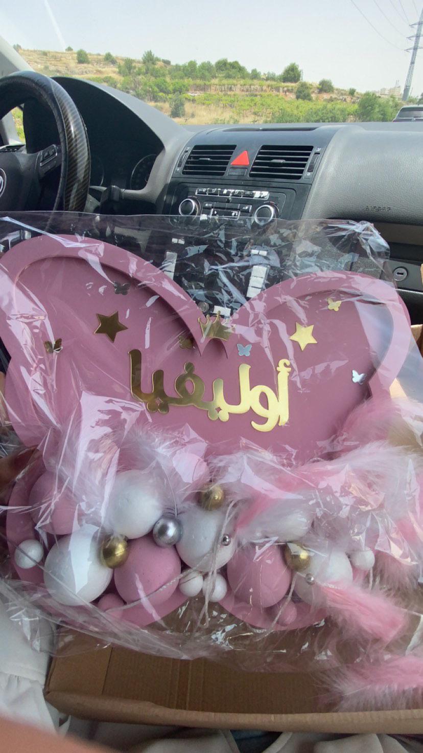 تعليقه على شكل فراشه زهري الاسم ناي لون الاسم ذهبي مع الاشكال