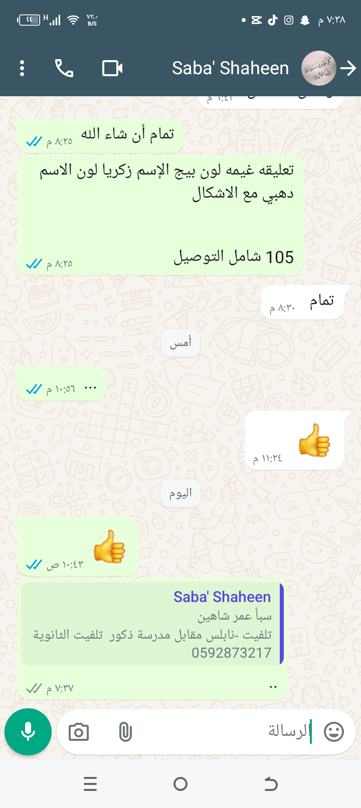 | السعر المبيوع | 105 شيكل |