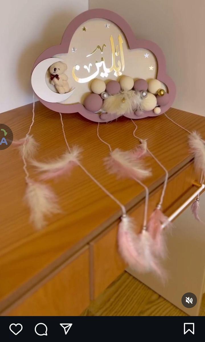 تعليقه غيمه لون نهدي الاسم المزن لون الاسم دهبي مع الاشكال (نفس نوعية الخط بدها يلي بالصورة )....