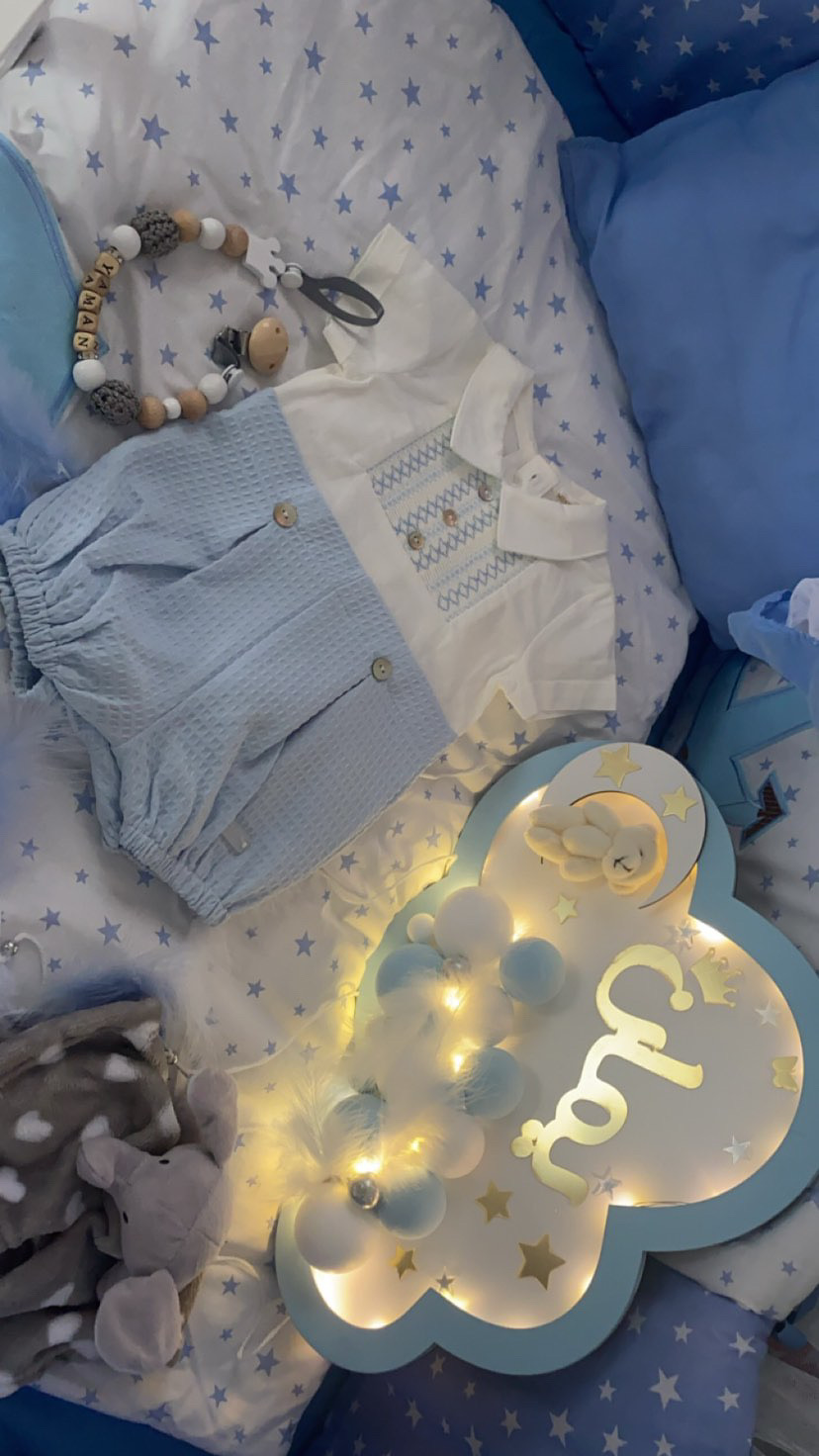 تغليقة غيمه لون ازرق الاسم متين لون الاسم فضي مع الاشكال