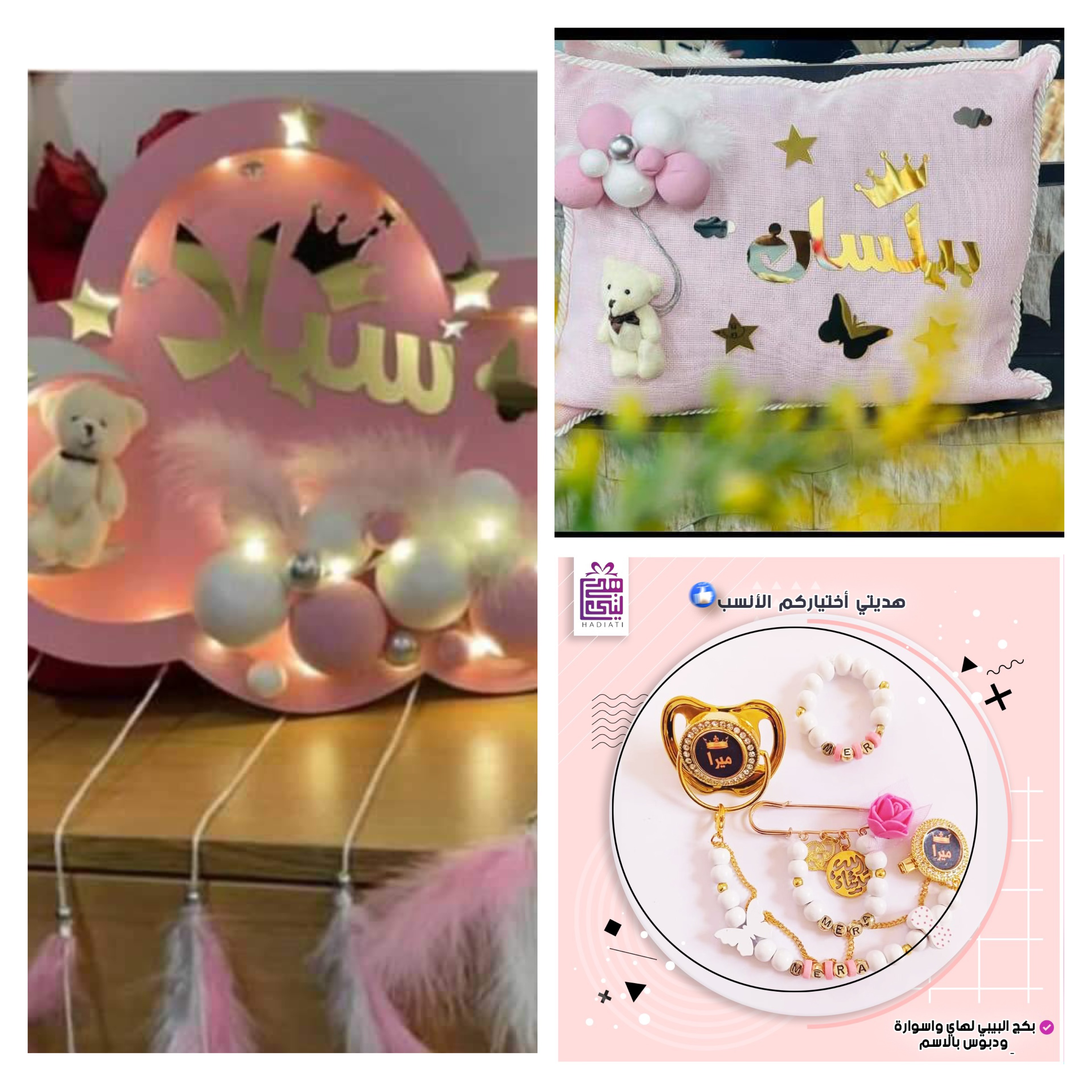1-تعليقه غيمه لون زهري الاسم ليال لون الاسم دهبي مع الاشكال …